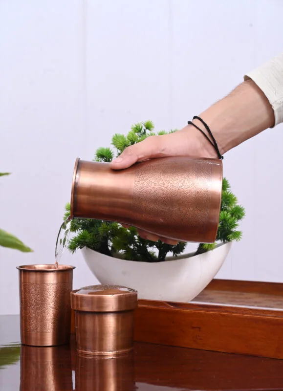 Curearth specializes in high-quality copper products designed to enhance your drinking experience and promote sustainability. Our collection includes copper bottles for on-the-go hydration, elegant copper glasses that elevate taste, durable copper jugs for serving, and traditional tankis for water storage