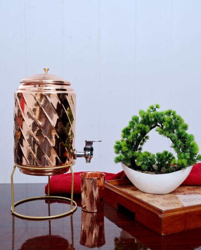 Curearth Pure Copper Mirror Salai water pot,KIng pure copper 5Ltr.Water Tanki & Free Stand