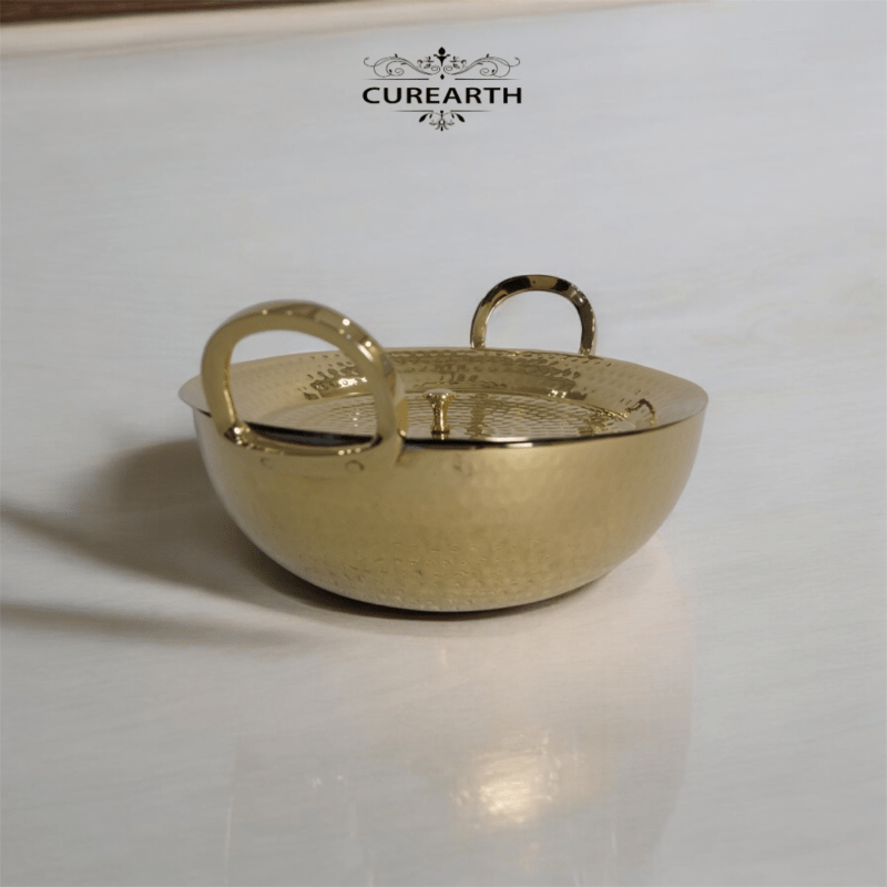 CUREARTH Brass Kadhai| Naturally Non Stick Brass Kadhai for Cooking| Handcrafted Curearth Brass Utensils for Kitchen