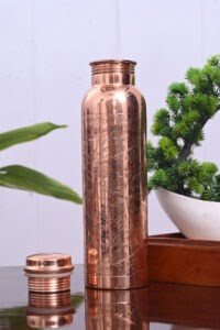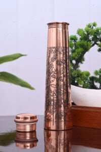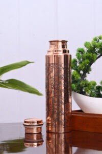 CUREARTH MINAR Pure Copper Bottle -Mirror Etching 700 ml Bottle (Pack of 1, Copper, water bottle)