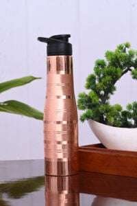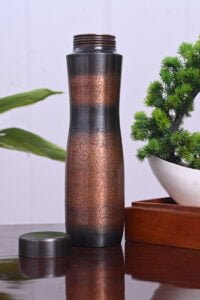 CUREARTH Classic Pure Copper Two Tone -Newage -Design Water Bottle, Health Benefits, Drinkware