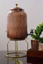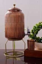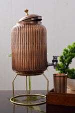 Curearth Copper Hammered Designer Joint Free Water Pot is a testament to the rich cultural heritage and traditional artistry of India. Embrace the charm and functionality of this water pot as you add a touch of sophistication to your dining experience or use it as a decorative piece to elevate the ambiance of your home.